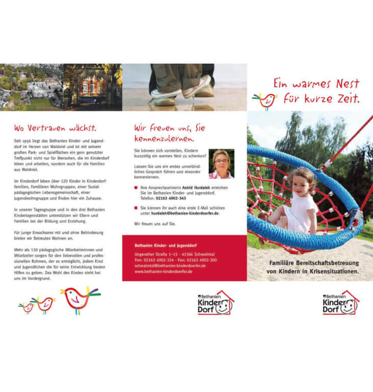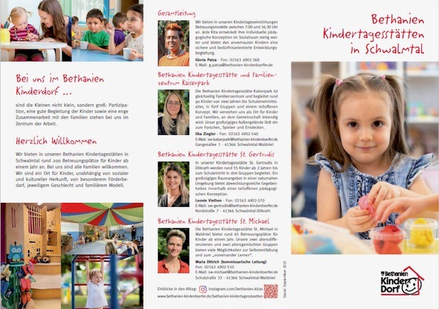 Der Flyer der Bethanien Kindertagesstätten in Schwalmtal gibt Informationen zu den drei Bethanien Kindertagesstätten und erklärt die Philosophie und das Leitbild der Kitas.