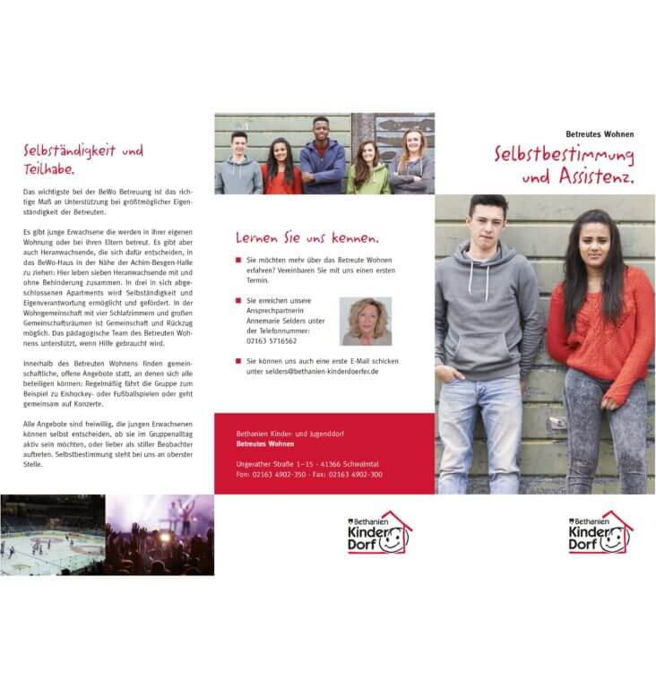 Der Flyer Selbstbestimmung und Assistenz gibt Informationen zum Betreuten Wohnen des Bethanien Kinderdorfes.