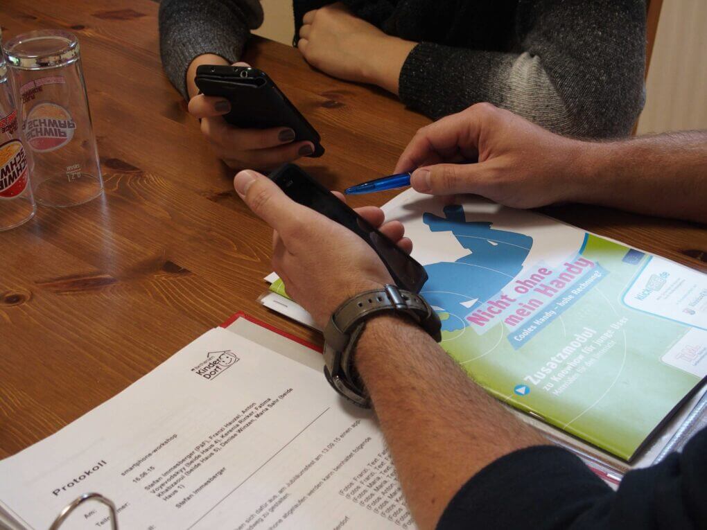 Ein Beispiel dafür sind die Smartphone-Workshops, die für alle Jugendlichen ab 13 Jahren verbindlich sind. Die vielen Funktionen und Möglichkeiten eines Smartphones setzen einen kompetenten Umgang damit voraus, der erst erlernt werden muss. Bei Jugendlichen spielt die Preisgabe persönlicher Daten eine tragende Rolle. Dabei müssen Jugendliche über Gefahren und Risiken, die bei der Nutzung der mobilen Alleskönner entstehen, aufgeklärt und beraten werden. In den einmal wöchentlich stattfindenden Workshops steht neben der Aufklärung der Austausch der Jugendlichen untereinander im Vordergrund. Alles rund um das Smartphone, Tipps zu aktuellen Apps sowie zum Thema Datenschutz werden diskutiert, so dass die Jugendlichen zu Experten ihres eigenen Handelns werden können.