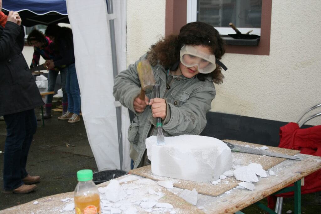 Kinderdorf kreativ, Stein hauen, meißeln