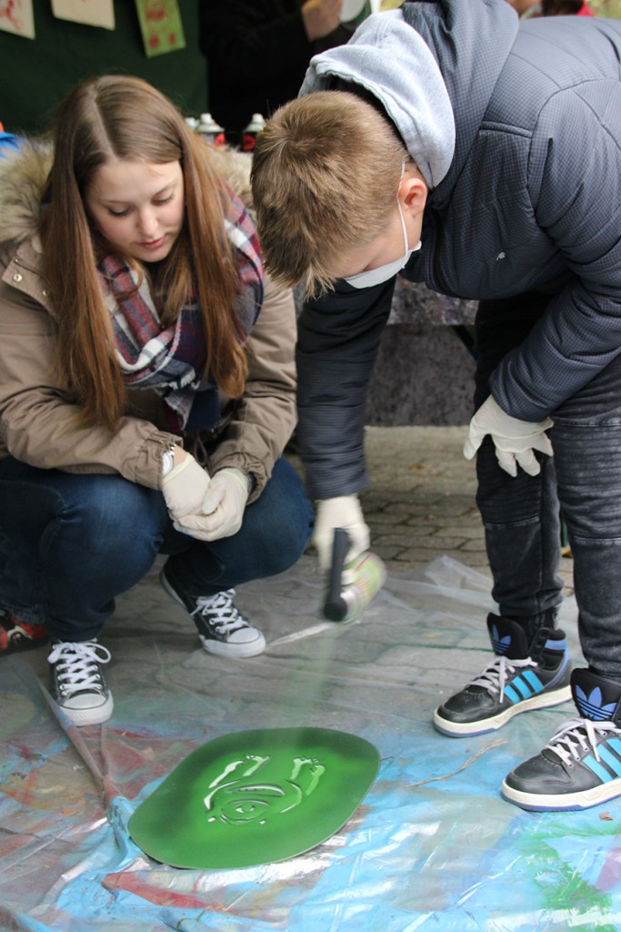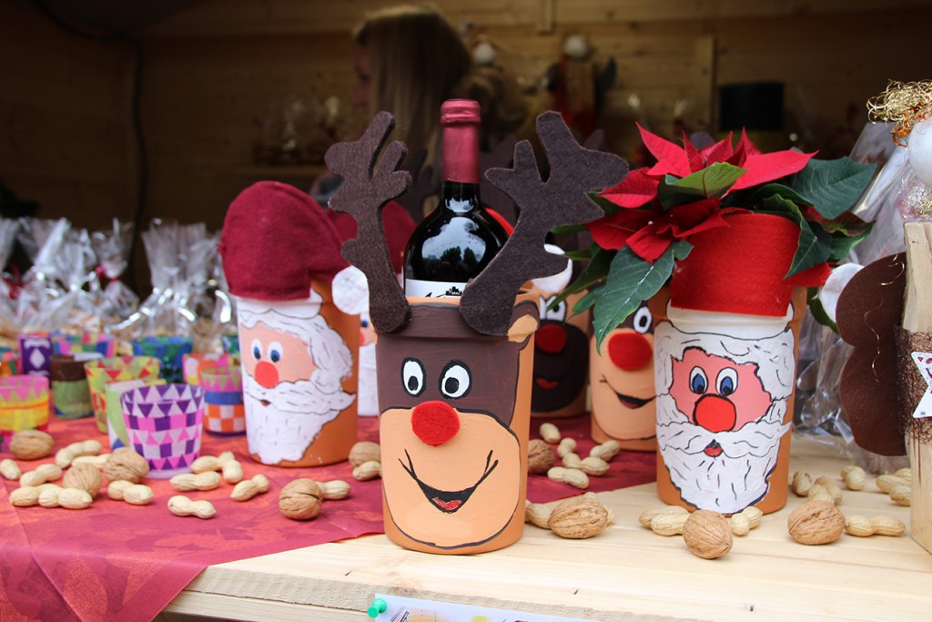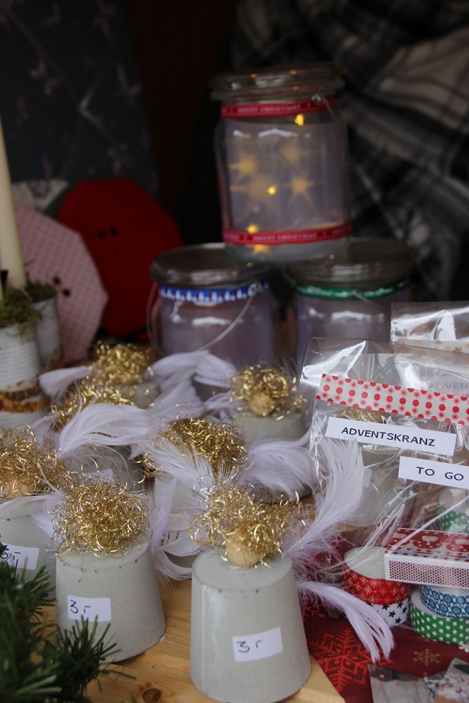 Auf der Holzbudenstraße gab es viel zu entdecken. Die Kinderdorffamilien und Gruppen haben seit Monaten für den besonderen Markt gebastelt: Liebevoll bemalte Teller und Tassen mit passenden Müslischalen und Baumscheiben, in denen kleine Motive gebrannt sind, Körnerkissen in Monsterform und Gläser mit Motiven und Namen, die vor Ort hergestellt wurden, und selbstgestaltete Grußkarten und Tannenbaumschmuck.