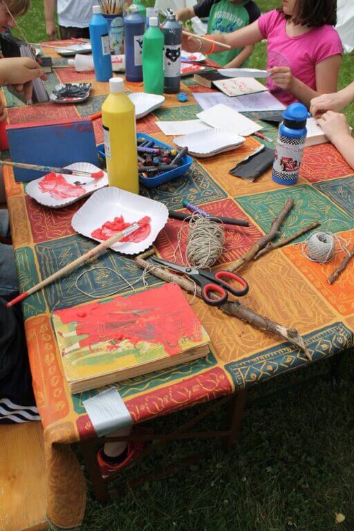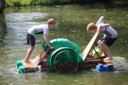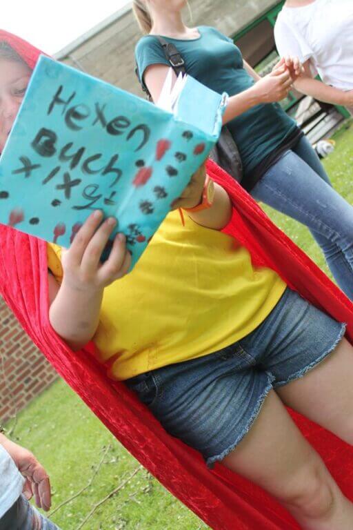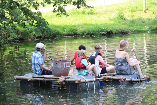 In den Kinderdörfern bieten wir deswegen ein ausgiebiges Ferienprogramm an: Es finden Aktionen des pädagogischen Fachdienstes auf dem Gelände statt. Im Kinderdorf in Schwalmtal wird in diesen Tagen auf unserer Kidoranch ein Ritterturnier geplant, unser Pädagoge Reinhard Ziegler hat ein Floss gebaut, das er im Kinderdorfweiher zu Wasser lässt und unser Fachpädagoge René Schellbach macht eine Menge sportlicher Angebote. Im Kinderdorf in Bergisch Gladbach finden im Moment Zaubertage statt: Nicht selten sieht man Kinder, die auf Besen durch das Kinderdorf flitzen, mit Zauberstäben fuchteln oder stolz ihr gebasteltes Zaubertrankbuch zeigen. Und auch im Kinderdorf in Eltville haben schon die ersten Aktionen gestartet: Angelehnt an die Sendung „1,2 oder 3“ fanden die ersten Quizturniere an den neuen Rätselsäulen statt.