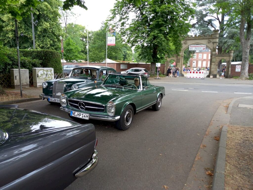 Bleibende Erinnerungen kann man sich also gleich von mehreren Stationen mit nach Hause nehmen. Vor der Boutique „Wie Neu“, die ihre Türen für die Sommerfestbesucher öffnet, laden liebevoll gepflegte Oldtimer zu kleinen Rundfahrten in die Umgebung ein – ein nostalgisches Reiseerlebnis, das nicht nur Autofans begeistert.