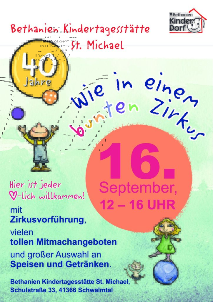 Ein Kitafest und zwei Jubiläen – wenn das kein Grund zum Feiern ist! Ein farbenfrohes Spektakel erwartet Besucher anlässlich des 40-jährigen Jubiläums der Bethanien Kindertagesstätte Sankt